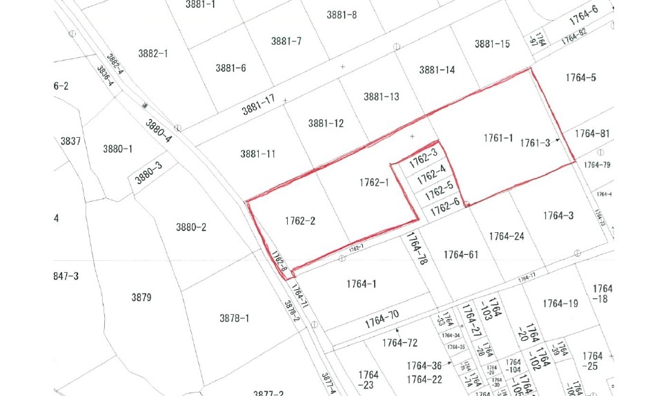 建築条件無し 1762-1・1761-1・1761-3は市街化調整区域 (50戸連たん区域・一般住宅の建築の際は熊野町建築課と の協議が必要) 地積測量図なし