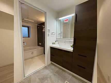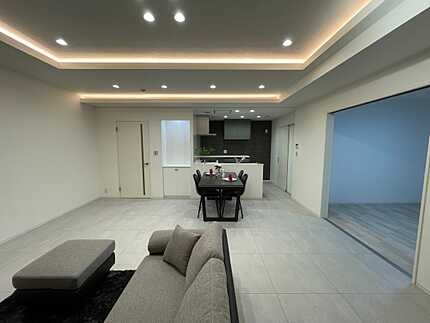 2025年11月上旬リフォーム完了予定:システムキッチン新規交換、ユニットバス新規交換 (浴室換気乾燥暖房機付)、洗面化粧台新規交換、トイレ新規交換、ガス給湯器 新規交換、カップボード新規取付、防水パン新規交換、建具新規交換、クロス 全室張替、床全室新規交換、ダウンライト新規交換、ダウンライト・間接照明新規取付 (LDK・主寝室・玄関)、カーテンレール全室新規取付、ハウスクリーニング完了