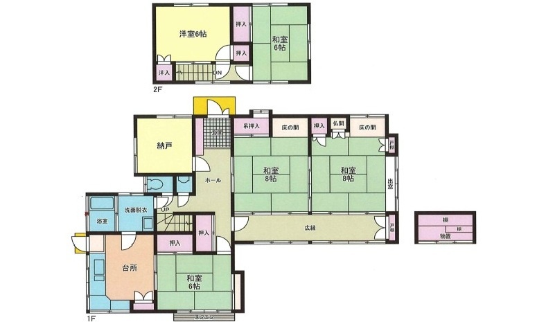 土地101坪 6DK 宮大工建築・和風建物 南東向き 隣接建物距離2m以上 前面棟無 整形地 閑静な住宅街 温水洗浄便座 2口コンロ 照明器具 トイレ2ヶ所 庭10坪以上 縁側 駐車場2台分 高台 角地 2方道路
